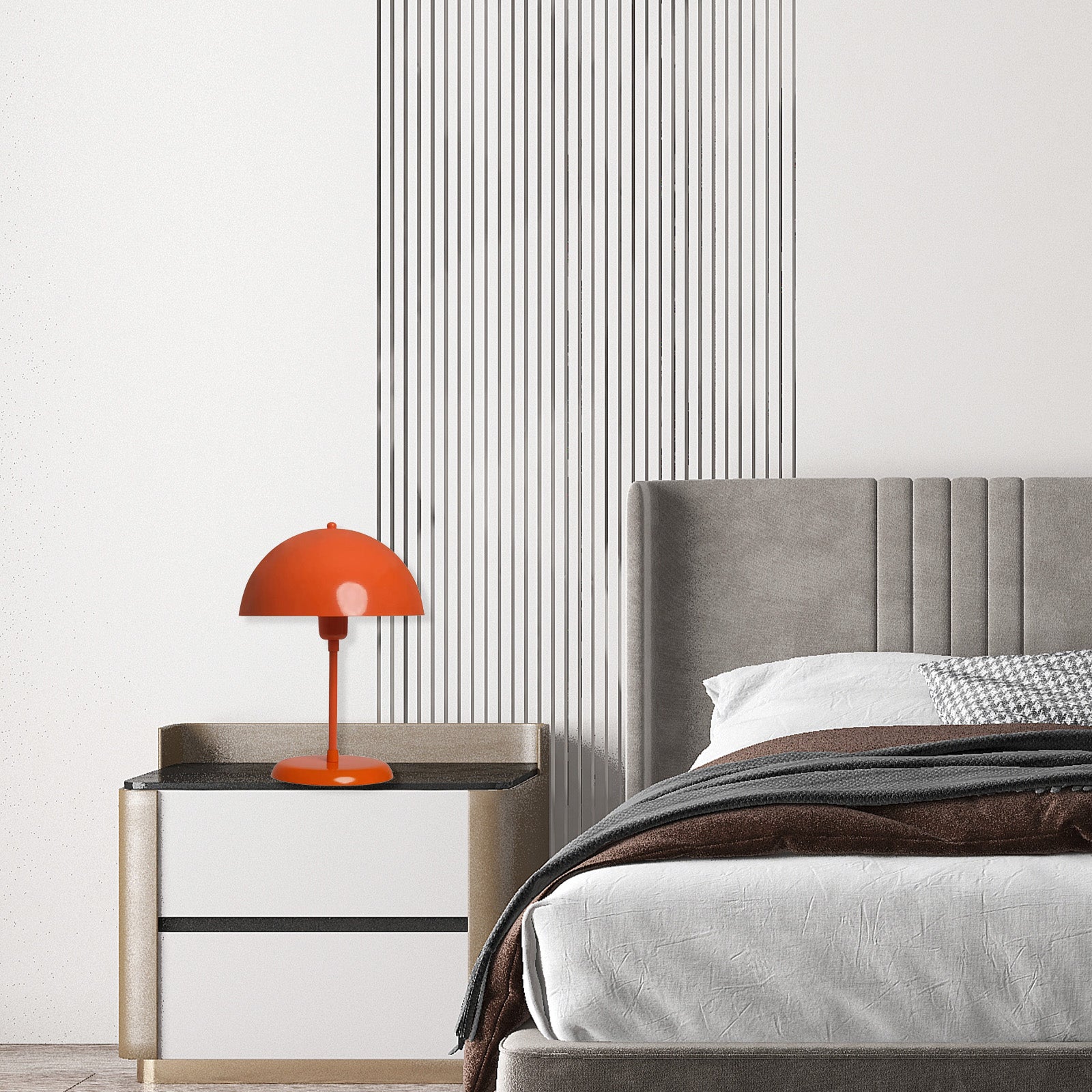 Die Bamyum Tischlampe fügt sich in allen Bereichen gut in Ihr Zuhause ein und wird so zu einer unverwechselbaren Ergänzung Ihrer Einrichtung. Zeitgenössische minimalistische und moderne Design-Schreibtischlampe. Dies ist die perfekte Nachttischlampe für stimmungsvolle Beleuchtung oder als Herzstück in Ihrem Zuhause. Fügt sich nahtlos in jeden Raum ein und lädt durch seinen gemütlichen, warmen so wie es aussieht ein entspannendes Gefühl ein. Mit diesen Tischlampen können Sie Bücherei und Restaurants einen stilvollen Look verleihen. Stellen Tischleuchte im Wohnzimmer auf einen Beistelltisch oder auf einem Couchtisch, im Arbeitszimmer auf den Schreibtisch, in der Küche auf die Fensterbank, im Flur in ein Regal oder im Schlafzimmer auf den Nachttisch. Sie können unsere Tischlampe auch im Kinderzimmer, auf dem Büro Schreibtisch und Hotelschreibtisch verwenden. Ideal, um eine entspannte Atmosphäre zu schaffen. Sie können es als Schreibtischlampe oder Nachttischlampen verwenden. Ja das ist richtig! Material: Metall (größe: wie abgebildet). Passend für die E27 Leuchtmittel. Höhe: 35 cm, Breite des Lampenschirms: ⌀ 25 cm. Sie können Halogen- und LED-Leuchtmittel mit maximal 60 Watt Energiesparlampe verwenden. (Leuchtmittel nicht enthalten). Spannung: 100-240 V. Kann mit Dimmer verwendet werden. Tischlampe wird durch sein Kabel verwendet. Ein/Aus-Schalter ist ebenfalls vorhanden. Pflegeleichte Reinigung mit feuchtem Tuch (nicht mit Wasser besprühen!). Made in Türkiye